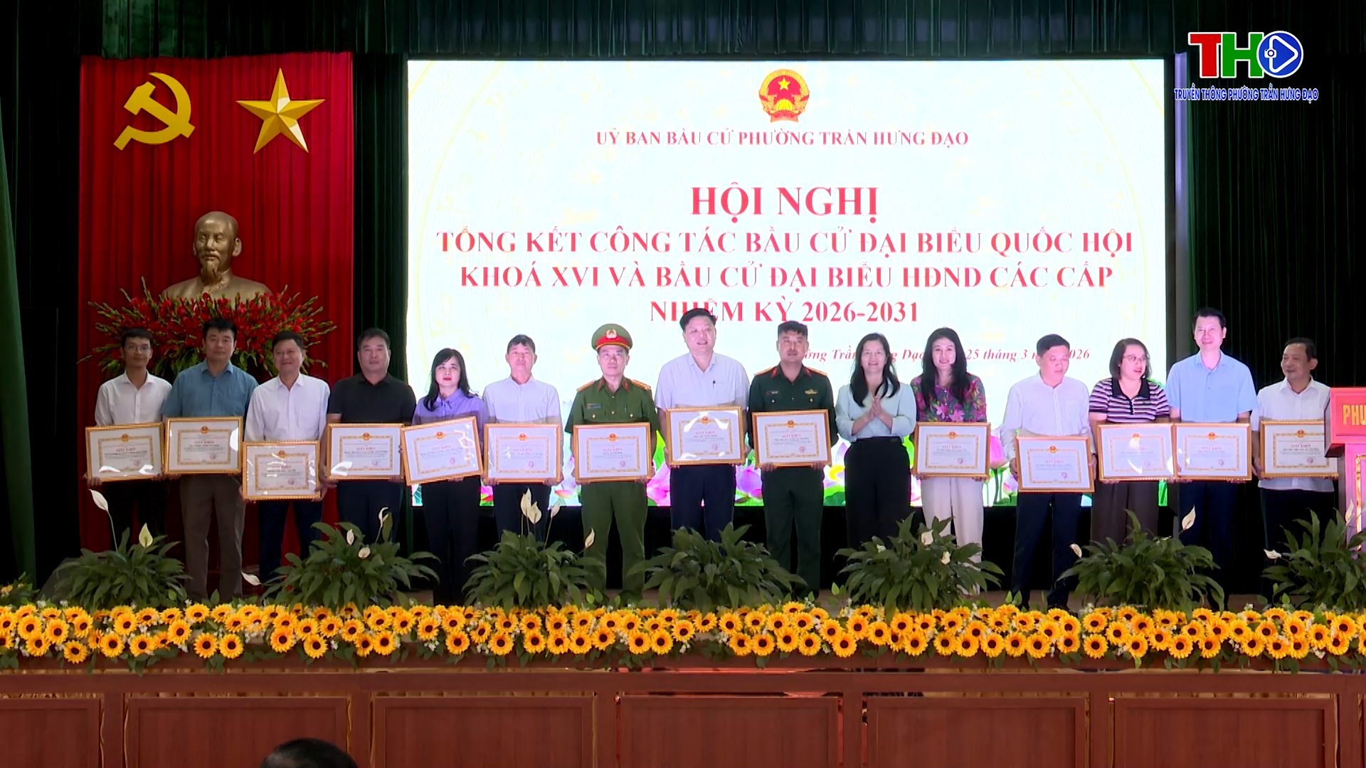 Chiều ngày 25/3, Ủy ban Bầu cử phường Trần Hưng Đạo tổ chức hội nghị tổng kết cuộc bầu cử đại biểu Quốc hội khóa XVI và đại biểu Hội đồng nhân dân các cấp nhiệm kỳ 2026-2031. Tham dự hội nghị có đồng chí Nguyễn Minh Thắng – Bí thư Đảng ủy, Chủ tịch Hội đồng nhân dân, Trưởng Ban chỉ đạo bầu cử, Chủ tịch Uỷ ban bầu cử phường; đồng chí Vũ Thị Hiên – Phó Bí thư thường trực Đảng uỷ, Đ/c Nguyễn Văn Hà PBT đảng ủy- Chủ tịch UBND phường cùng các đồng chí lãnh đạo phường; thành viên Ban Chỉ đạo, Ủy ban Bầu cử; đại diện các ban, ngành, đoàn thể; các ban bầu cử, tổ bầu cử; bí thư chi bộ, tổ trưởng tổ dân phố; cùng đại diện các cơ quan, đơn vị trên địa bàn và các tập thể, cá nhân được khen thưởng.
